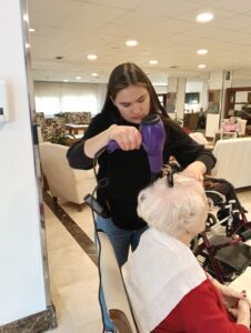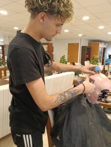 El alumnado de Peluquería y Cosmética Capilar aprende a realizar cortes y peinados a la vez que ofrece un servicio a personas de la tercera edad de la Residencia Ballesol.